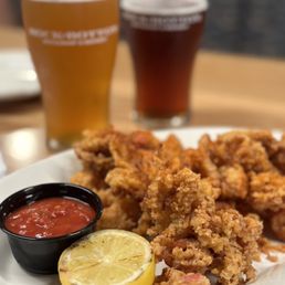 Team Lunch - Ambiance (2*) A bit grimy feeling inside and out. We sat on the patio for this meal, and I think some slightly stronger fans would help. - Service (4*) Pretty good and friendly enough. - Loaded Nachos, $21.50 (5*) Fantastic spread with a big flat presentation made it very easy to eat. - Firecracker Shrimp, $17 (5*) Great flavor. Could easily munch a bunch of these. - Fish & Chips, $21 (4*) Nice flake to the fish. Good batter. Tasty fries. The cole slaw was a bit dry. - Value (3*) Mixed bag. I think the nachos were great. The shrimp and fish/chips were a bit overpriced for me relative to portion size. - Final Word Very straightforward restaurant with surprisingly good food.