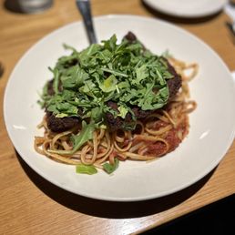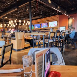 3.5 to be honest but I feel okay rounding up. Fiancée and I had plans to watch a 930pm move at Pruneyard so decided to grab a bite and finish the football game at Rock Bottom. Lots of seating and lots of TVs everywhere which is a plus. Got seated at the bar right away. I was itching for an espresso martini, it wasn't on their cocktail menu but they made me one which I really appreciated. Parmesan Garlic Fries 5/5: my favorite thing! Lots of garlic and perfect fries. Chicken wings 4/5: flavor was good but I like my wings crispier. Nashville hot chicken pizza: I liked the concept. The chicken was good. I think the dough was just so slightly doughy. I had to dock a point cause some of the plates and silverware were dirty. On the front of the menu it says elevated food and drinks. Idk about elevated but it is very on par with other similar establishments.